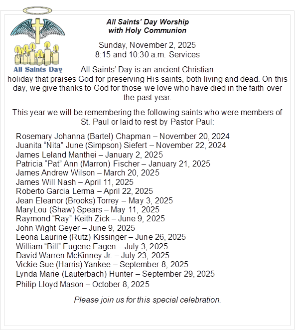 Learn a bit more about St.Paul Lutheran Church, our beliefs, what’s happening beyond our campus and more!