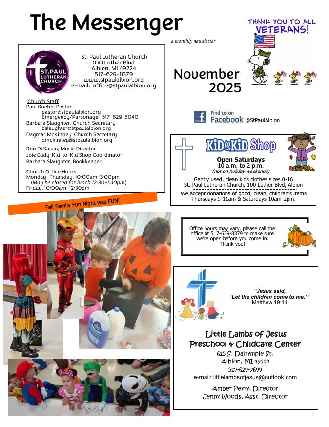 We release a newsletter every month to keep the congregation informed. The newsletter includes various events happening throughout the month, a message from Pastor Paul, a prayer list, and other info you won’t want to miss out on. Check out this month’s newsletter now!